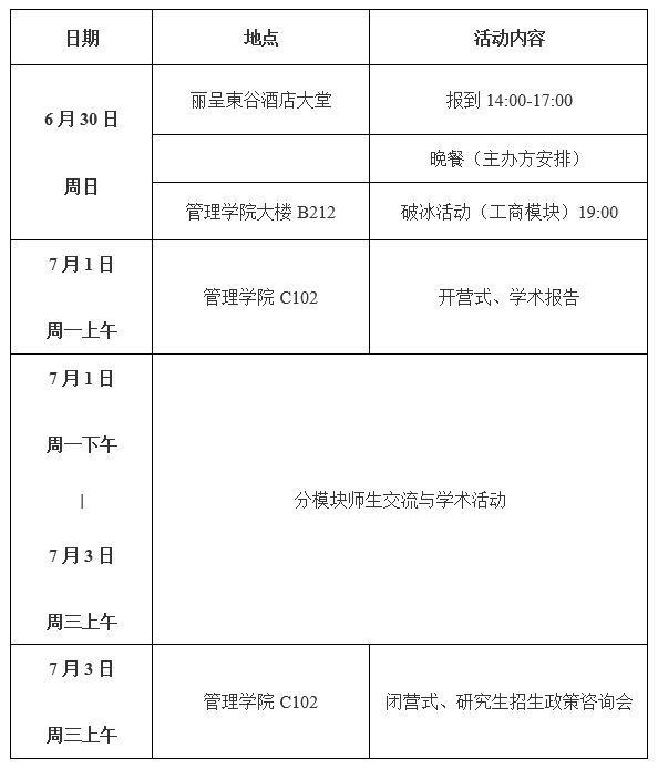 报到时间:6月30日(周日)14:00-17:00
