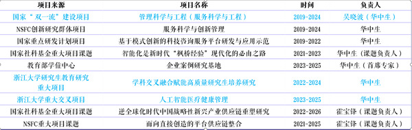 华中生教授牵头“服务科学与创新管理”创新研究群体项目,以大平台跨学科培养学生。华老师常说“我们要引导学生有使命感科研!”。团队定期组织跨学科大例会,从科研选题开始引导和把关,激发研究兴趣,将“国家需求、中国情境、基础前沿、国际水平”的价值导向融入培养环节。定期组织小组会,落实课题思政,在国家自科、社科基金项目课题的研究过程中,着重引导学生聚焦国家战略和产业重大需求的科研方向,细致指导提升学生科研能力。