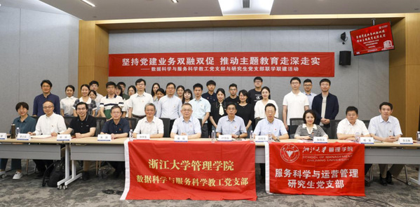 团队以管理学院党委创建全国党建标杆院系为牵引,坚持党建业务两手抓,实行党班团一体化,将支部建在导学团队,党小组与学术小组融合,委派团队张政老师担任德育导师,师生党支部结对共建、联学联建。把理论学习与学术研究结合起来,华老师曾多次分享聚焦国家战略和产业重大需求的科研和学科交叉育人,团队导师们与学生一起学习、解读党的二十大报告文本,党建业务双融双促活动邀请校党委副书记傅强亲自指导。
