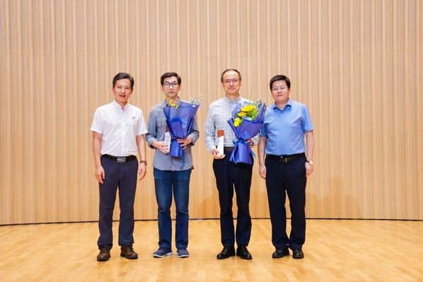 管理学院副院长窦军生、杨翼共同为过去多年来将自己大量时间投入到EDP课程设置与教学的教师代表——张钢、郭斌颁发“桃李芬芳奖”奖。