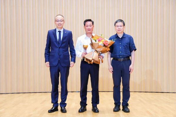 仪式上,管理学院党委书记兼副院长朱原,常务副院长、党委副书记谢小云为孙建平颁发“卓越功勋奖”。