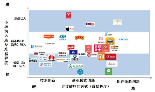 创新者的逆袭,一定要另辟蹊径,换道超车。在技术上另辟蹊径、在商业模式上另辟蹊径、在服务用户体验上另辟蹊径,由此我们提出了创新逆袭矩阵(颠覆性创新矩阵)。