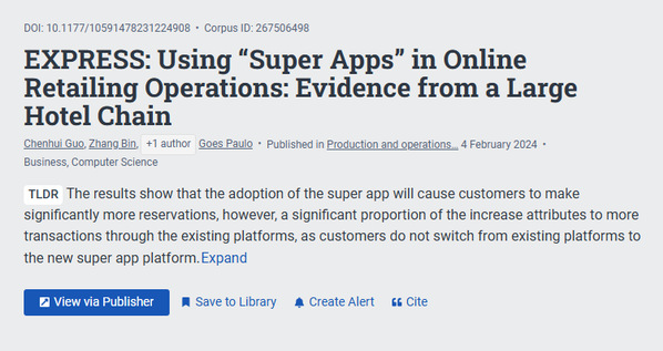 陈熹团队的这项研究为超级app作为零售平台的经济价值提供实证证据,也为企业继续将超级app作为额外零售平台,纳入业务战略的市场决策打上一针“强心剂”。