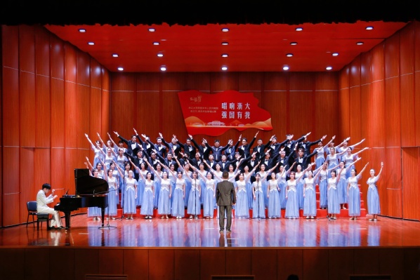 决赛中,管理学院合唱团选择了《没有共产党就没有新中国》(姚峰版)这一经典曲目,深情地唱出国家和民族繁荣昌盛的“成功密码”。合唱团成员们用真挚的情感,将歌曲演绎得淋漓尽致,动情地传达了对党的热爱和对祖国的深情祝福。