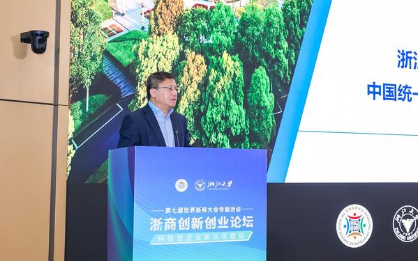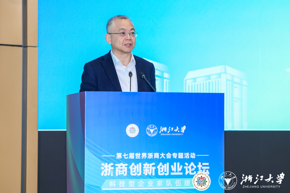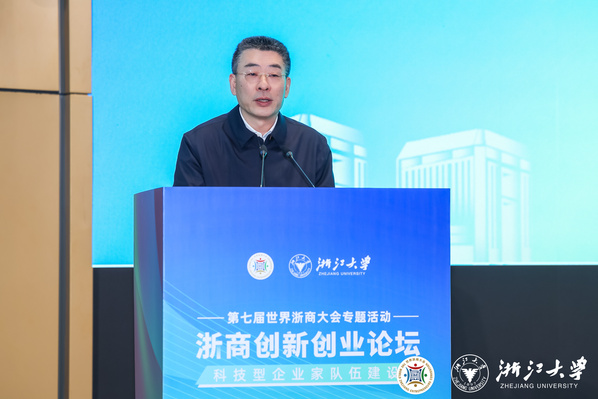 浙江大学党委副书记傅强在致辞中表示,浙江大学作为高水平研究型大学,始终与党和国家事业发展同频共振,坚持为党育人、为国育才的理念,培养了一大批拔尖创新人才,造就了具有“科学家气质”的企业家群体。希望本次论坛能够进一步推动科技创新与企业家精神的深度融合,为科技型企业的发展贡献浙江方案和中国智慧。