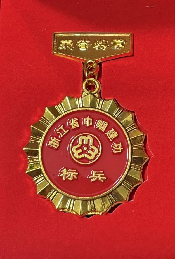 黄英教授获得的“浙江省巾帼建功标兵”奖牌