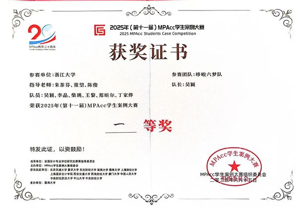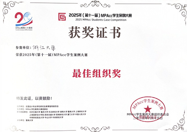 2025年(第十一届)全国MPAcc学生案例大赛落下帷幕,浙江大学MPAcc学生奋勇拼搏,从全国3200支团队中脱颖而出,再创佳绩,荣获两项全国一等奖,一项全国三等奖!这也是继去年首次获得全国一等奖的再次突破,体现了浙江大学MPAcc在学院“BEST”战略引领下,积极推动智能化转型,培养复合型创新型领导型人才的初步成效。