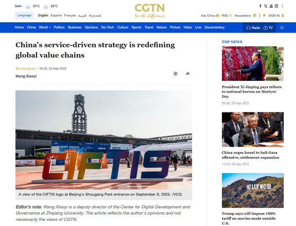 环球网页版市场营销学系教授王小毅近日在中国国际电视台(CGTN)发表文章,深入分析了在全球经济格局深刻变革的背景下,中国如何通过数字驱动和服务创新重塑在全球价值链中的角色与地位。这篇文章不仅回应了当前全球经贸格局的深刻变化,也为理解中国服务贸易的未来方向提供了重要视角。
