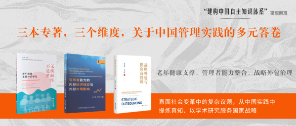 本期【建构中国自主知识体系】,我们一起走进这三本分别从老年健康支撑、管理者能力整合、战略外包治理三个维度展开深入研究的专著,感受管院学者如何从中国实践中提炼真知、以学术研究服务国家战略。
