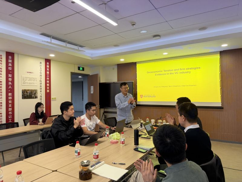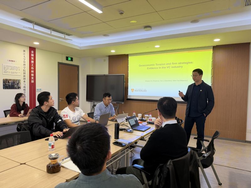 10月31日上午,“与主编面对面”系列第二十三期暨创新创业与战略学系学术讲座邀请到了加拿大滑铁卢大学Victor Cui(崔鸿)教授,与管理学院师生围绕“地缘经济紧张局势与企业战略:来自风险投资行业的证据”这一主题展开交流。本次讲座由创新创业与战略系刘洋老师主持。